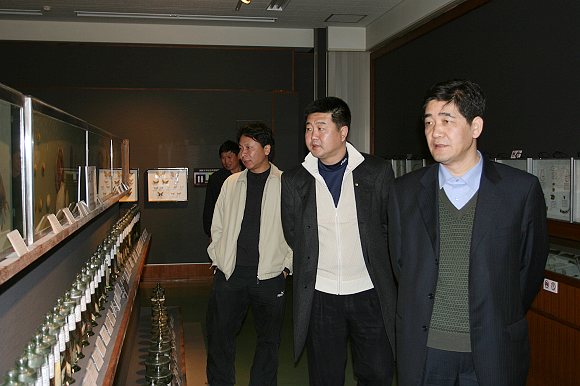 趙顯利副校長一行在參觀朝鮮大學校的自然博物館。