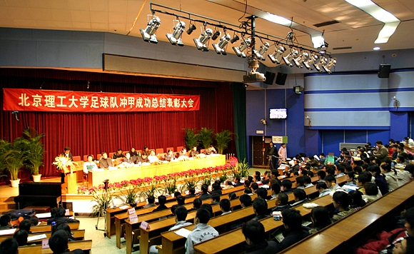 表彰大會上,學校體育部主任劉啟孝匯報了足球隊近年來所取得的成績。北京理工大學足球隊自2000年成立以來,四次榮獲全國大學生足球聯賽冠軍,代表中國出征世界大學生運動會,取得第七名的好成績。今年,在全國足球乙級聯賽中脫穎而出,榮膺桂冠,成為第一支成功沖入全國足球甲級聯賽的“學生軍”。 這一成就引起了社會的廣泛關注,在社會上樹立了學校和當代大學生的良好形象。