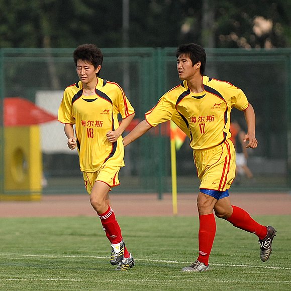 由于目前球隊共有近40名隊員,所謂一隊、二隊的區別并不是完全的一分為二,一般一隊中未上場的替補隊員還要接著參加當周的北京大甲賽,而所謂二隊的部分隊員其實是在以賽代練,保持狀態,隨時準備應征進入一隊,征戰中甲聯賽,因此,二隊的成績不好,金指也是看在眼里,急在心里,如果連其他高校中由普通的足球發燒友組成的球隊都無法擊敗,又如何能保持狀態,不斷提升自己的水平呢?當然部分隊員可能存在在怕受傷、怕影響到參加中甲的比賽,所以拼的不夠,不像在中甲的比賽那樣全力拼搶,這就給其他隊伍提供了一些玩命的機會,能夠擊敗打入中甲的“北理工隊”,即使是二線隊,恐怕也是一種非常光榮的事情~~~尤其是由于學校西操場為奧運場館改造的因素,學校決定所有的比賽,北理工主動全部放到客場的校園里舉行,天時、地利、人和都不占優,這樣看來,以后的北京大甲賽比賽絕對不可過于樂觀。