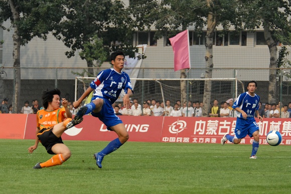 也許是輕敵的緣故,廣州醫藥隊一上來踢得有些漫不經心。而學生軍面對勁敵絲毫沒有放棄,大家都鼓足了勁奮力一搏。比賽前20分鐘雙方各有破門機會,廣藥并沒能在學生軍身上占到便宜。相反,愛國者大學生隊頻頻通過反擊威脅廣藥的防線,第26分鐘,韓國留學生金俊植左路帶球狂奔10余米后大力抽射,球稍微高出廣藥大門。第29分鐘,愛國者大學生隊隊長袁微被廣州醫藥外援撞傷,一分鐘后他再次被踢中,受傷不輕,被擔架抬出場外后才再次回到場上。