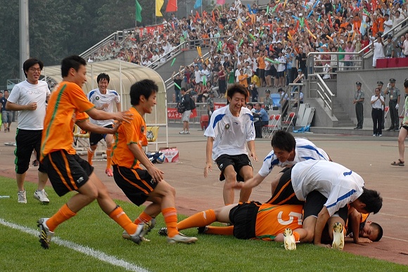 在今年中甲比賽中,出現了一支很特別,很有闖勁的隊伍,引起了全社會廣泛的關注。他就是 “北京愛國者大學生足球隊”。他全部由北京理工大學的學生軍組成,在去年作為唯一一支非職業隊與眾多職業隊較量,在金志揚教練的帶領下,一舉奪得乙級聯賽冠軍,沖甲成功,創造了中國足壇的一個神話。今年中甲,這支隊伍得到了國內知名IT企業愛國者的鼎力支持,并以“愛國者大學生隊”的名稱征戰中甲。