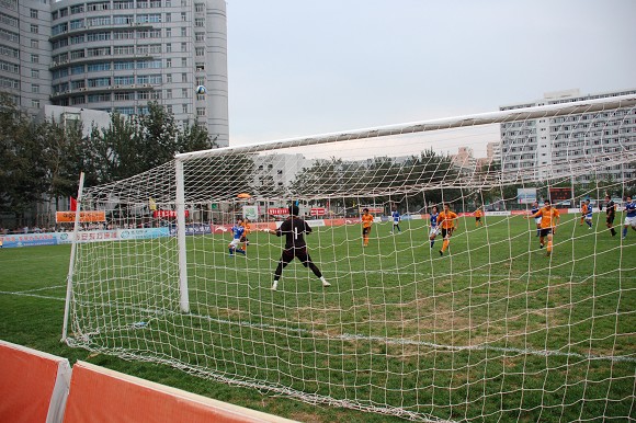 下半場開始,愛國者隊率先發難,37號金俊值左路突破后妙傳,跟進的兩名愛國者隊隊員沒有碰到,但回防的七斗星隊隊員險些自擺烏龍。此后雙方比賽趨于平穩,愛國者隊立足于打防守反擊,但總解決不好最后一傳的問題,而七斗星隊更多的是依靠遠射來威脅愛國者隊的大門。