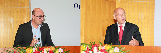 康斯坦斯應(yīng)用科學(xué)大學(xué)Josef Wieland教授與Roland Luxemburger先生共同給第七期畢業(yè)生頒發(fā)了學(xué)位證書并給予了美好祝愿