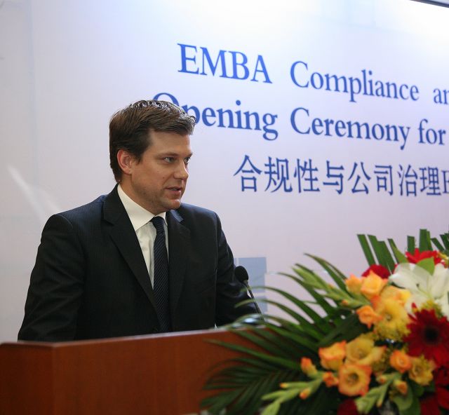 戴姆勒亞非地區銷售和金融事業部人力資源主任Matthias Zeuch先生致辭,他首先熱烈歡迎新學員加入EMBA項目學習,他指出:“經濟全球化需要規范企業和經理人員行為標準,‘合規性與公司治理’高級工商管理碩士(EMBA)將有利于企業管理更好的規范化標準化。我們將進一步加大合作力度,提高企業人力資源質量,為企業發展提供強勁動力而共同努力。”