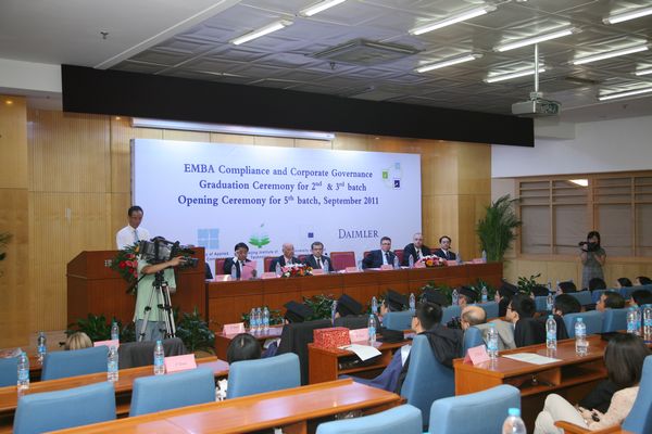 副校長孫逢春教授在典禮上致辭。他說:為戴姆勒公司隆重舉辦的 “合規(guī)性與公司治理” EMBA班從2007年創(chuàng)辦至今,開辦了五期,已走過五年發(fā)展歷程。我們成功的合作不僅為戴姆勒等公司培養(yǎng)了51位高層國際化人才,而且積累了校企高水平國際合作的寶貴經驗,促進了各自的發(fā)展,成為校企合作的成功典范。孫校長還強調要進一步做好學校EMBA項目的各項教學、管理服務工作,并希望畢業(yè)學員帶著理工大學精神更好地為企業(yè)的發(fā)展、校企合作和社會的進步貢獻聰明才智,鼓勵新學員要珍惜機會,潛心學習新的現代企業(yè)管理理念和管理方法,為我們的共同事業(yè)而奮發(fā)學習和工作。