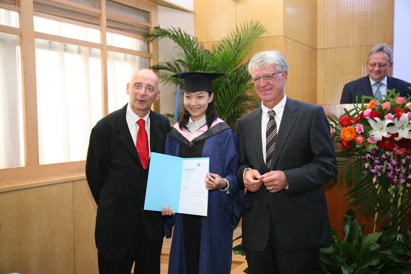 2012年9月7日下午,在我校國際教育交流大廈三層報(bào)告廳隆重舉行我校與德國康斯坦斯應(yīng)用科學(xué)大學(xué)合作為國際著名奔馳汽車生產(chǎn)商戴姆勒公司舉辦的EMBA項(xiàng)目第四期畢業(yè)典禮暨第六期新生開學(xué)典禮。出席典禮的嘉賓有:北京理工大學(xué)副校長孫逢春教授、戴姆勒東北亞地區(qū)首席財(cái)務(wù)官Helmut Ruhl先生、戴姆勒東北亞投資有限公司執(zhí)行副總裁Matthias Zeuch先生、因戈?duì)査顾貞?yīng)用科學(xué)大學(xué)Thomas Doyé教授、康斯坦斯應(yīng)用科學(xué)大學(xué)Josef Wieland教授、康斯坦斯應(yīng)用科學(xué)大學(xué)繼續(xù)教育部部長Roland Luxemburger先生、我校國際教育合作處王慶林處長、國際教育合作學(xué)院梅文博院長、羅佳書記、第四期全體學(xué)員和第六期新學(xué)員。典禮由梅文博教授主持。