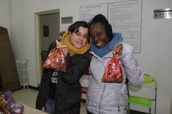 留學生中心主任汪瀅帶領員工在一個個喜慶的“福袋”里裝滿糖果,每一個福袋里都有一張老師們親手書寫的節日祝福賀卡,表達了學校對留學生和港澳臺交換學生們最深切的關心和祝福。