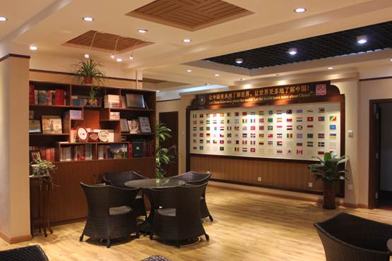 在活動室的一面墻上,特別設計了一面“國旗墻”,將我校所有在校留學生的國家的國旗粘貼在墻上,體現了北京理工大學熱情歡迎八方學子的理念。