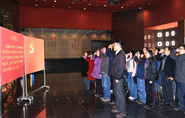 11月6日,圖書館黨總支組織全體黨員開展了創先爭優主題黨日活動?;顒影膫€環節:銘記歷史,勿忘使命——參觀中國人民抗日戰爭紀念館;升華思想,堅定信念——舉行新黨員入黨宣誓暨老黨員重溫入黨誓詞儀式;回溯源頭,傳承命脈——參觀徐特立紀念展;莊嚴承諾,永葆先進——舉行黨員創先爭優承諾儀式。