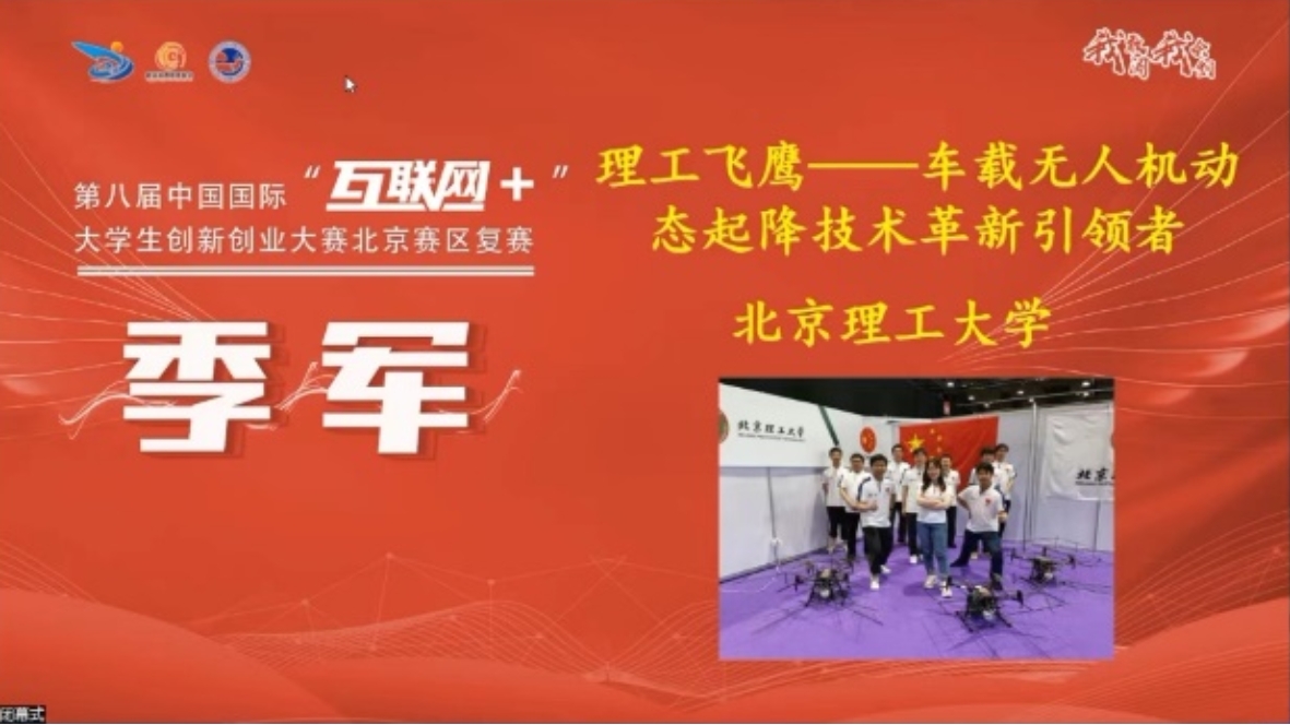 北京理工大學宇航學院推薦的項目《理工飛鷹——車載無人機動態起降技術革新引領者》獲得北京賽區季軍,信息與電子學院推薦的命題項目《基于昇騰算力及CANN的創新應用》獲得北京賽區產業命題賽道第一名。北京理工大學8個項目入圍冠軍爭奪賽暨40強排位賽,數量居全市第一,獲北京賽區優秀組織獎。