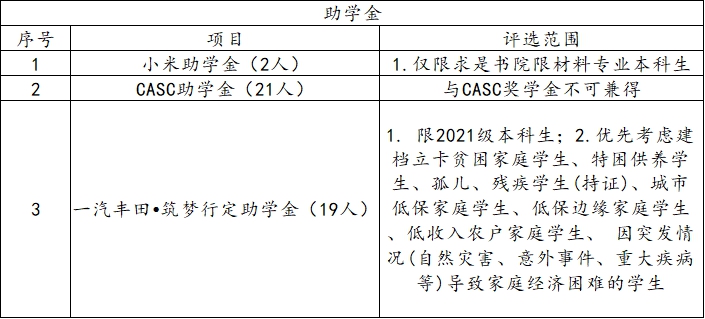 3. CASC獎學金:一等獎10000元/人,二等獎5000元/人,三等獎3000元/人;CASC助學金:本科生3000元/人,研究生2000元/人。