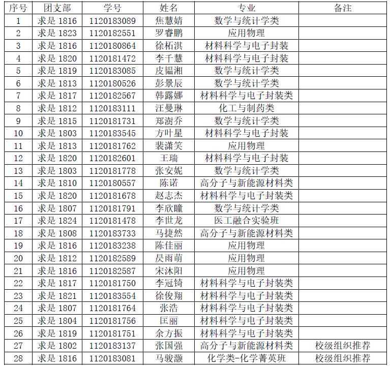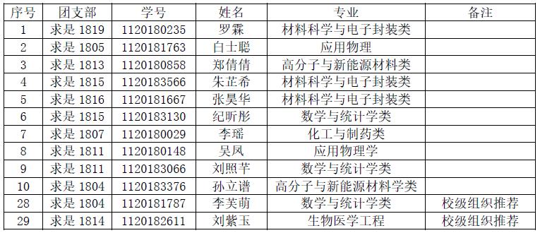 根據共青團北京理工大學委員會《關于開展2019-2020年度共青團系統“五四”評優工作的通知》,2020年4月12日起,求是書院分團委啟動本次評優宣傳動員和院級評選申報工作。經18級各基層團支部組織申報,綜合2018-2019-2學期綜合測評成績、2019-2020-1學期學業成績、團員日常表現及專職團干部評價,擬推薦焦慧婧等26名同學獲得“優秀團員”榮譽稱號,白士聰等10名同學獲得“優秀團干部”榮譽稱號,求是1816團支部等3個團支部獲得“優秀團支部”榮譽稱號;擬推薦求是1807團支部李欣瞳同學參評校級“志愿服務先進個人”,擬推薦求是1815團支部“擔復興大任·做時代新人”系列團日活動參評校級主題教育特色項目。