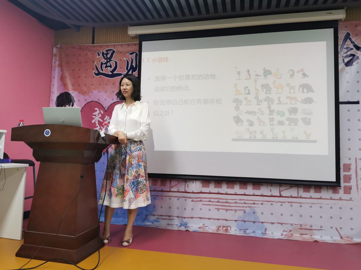 報告開始前,王碩老師為同學們介紹了李旭珊主任的個人經歷和她在心理咨詢輔導方面的工作經驗。隨后,李旭珊老師從三個方面詳細地和同學們展開互動,通過多種形式了解大家處于青年時期內心最真實的想法,有針對性地提出了當下社會上流傳甚廣的“內卷”“躺平”等網絡熱詞,對于同學們處于當下階段內心深處對于未來的迷茫做出了細致的指導。李旭珊老師和大家強調自我探索,發現自己內心的渴望的重要意義,通過精彩的小游戲更加深入地了解大家的想法,鼓勵大家建構自己幸福生活的基石。李旭珊老師和大家探討擁有與追求生命的意義,探討自我感知與生活價值二者之間的關系與聯系,希望大家可以在一定程度上掌控自己內心的幸福。