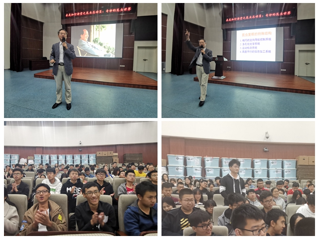 彩萬志教授兩小時的精彩報告中,通過生動具體的故事描述,詼諧幽默的語言詮釋,五彩斑斕的照片展示,筆走龍蛇的書法演繹,為在場的求是書生們帶來了一場視覺和聽覺上的科學盛宴。報告內容精彩且引人深思,具有很強的科普性和啟發性。報告結束之后,同學們紛紛向彩教授提出個人關于報告內容的一些疑惑,彩教授一一做了認真細致的解答。