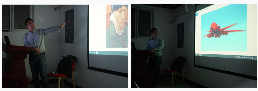 其次,黃教授通過照片和視頻的形式為大家帶來了一場絕無僅有的視覺盛宴,從為中國版畫做出巨大貢獻的魯迅先生出發,同學們先后欣賞了日本浮世繪風格的版畫,法國,西班牙等國家不同時期的版畫形式及發展歷程,透過畫背后的故事和畫家的身份從中可以體會到版畫家意在通過顏色表達所思所想,謳歌生命,借助刻版來追求其心理的表達;