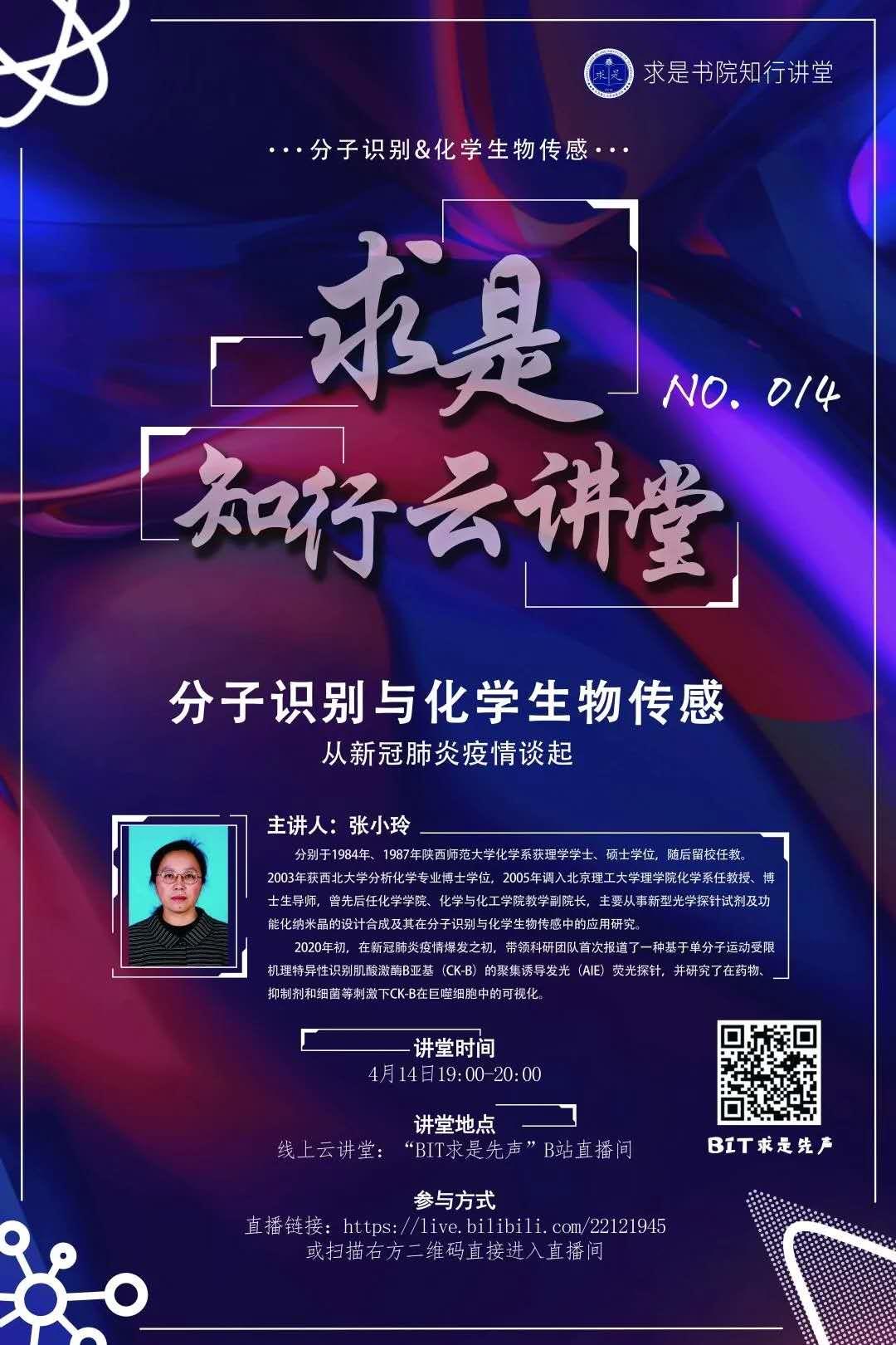 但是由于疫情的影響,本應(yīng)在美麗的校園里發(fā)展興趣愛好、學(xué)習(xí)知識(shí)技能的北理學(xué)子們不得不在家中進(jìn)行學(xué)習(xí)。盡管如此,學(xué)校還是盡可能地創(chuàng)造條件為大家提供良好的教學(xué)環(huán)境,讓北理學(xué)子享受到更優(yōu)質(zhì)的教學(xué)資源。為此,四月十四日,求是書院舉辦了這次“知行云講堂”活動(dòng),邀請(qǐng)到了化學(xué)與化工學(xué)院的張小玲教授作為主講人,通過直播的方式來為北理學(xué)子帶來了一次精彩的講座。在直播平臺(tái)上,講座直播間人氣將近5000。報(bào)告會(huì)由求是書院團(tuán)委書記、綜合辦公室主任張鋒老師主持。