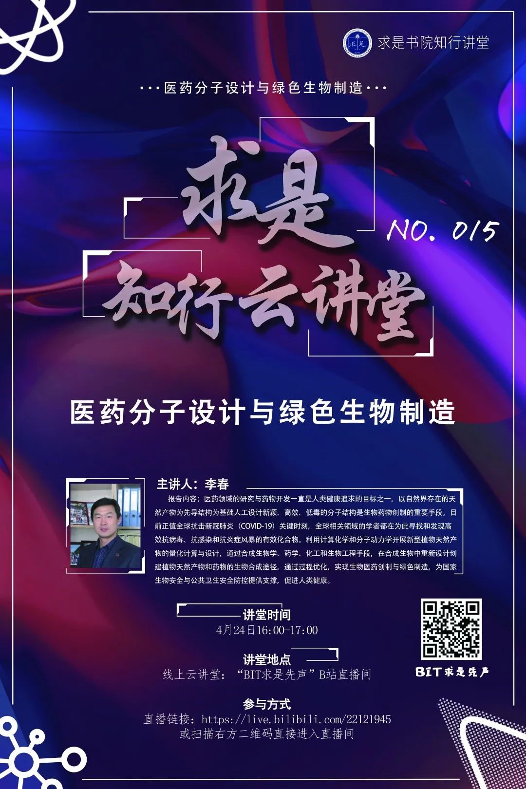 4月24日晚,求是書(shū)院舉辦“知行云講堂”活動(dòng),特別邀請(qǐng)到了化學(xué)與化工學(xué)院的李春教授作為主講人,通過(guò)直播的方式為北理學(xué)子帶來(lái)了一次精彩的講座。