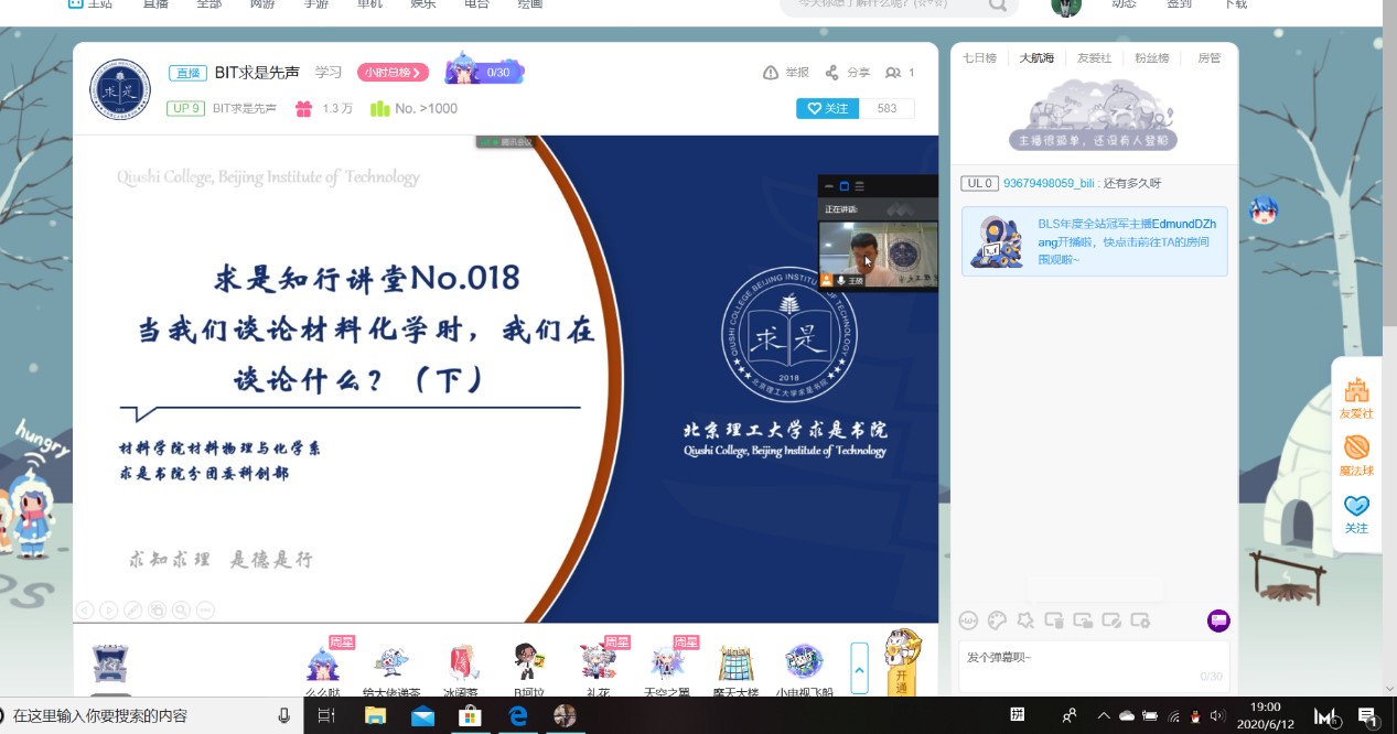 求是19級韓悅淇:今天我觀看了在b站直播的第十八期求是知行云講堂“當我們談論材料化學時,我們在談論什么”。在本次講座中我收獲頗豐。本次講座邀請了蔡政旭,葉霖,朱有啟,魏婧四位優秀的材料學院的老師,他們深入淺出地講解了許多關于材料化學方面的知識,讓我對材料化學這個專業方向更加了解。同時,老師也為我們解答了關于本科生進行科研的問題,我也對自己未來的道路選擇有了新的看法