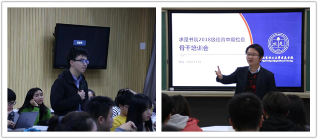 輔導(dǎo)員王碩在培訓(xùn)會上這樣鼓舞2018級的各位班長支書們。11月10日晚21點,求是書院召開“求是書院2018級本科生德育中期檢查骨干培訓(xùn)會”,求是書院副院長周芳集、專職輔導(dǎo)員王碩、2018級全體班長支書參與了骨干培訓(xùn)會。