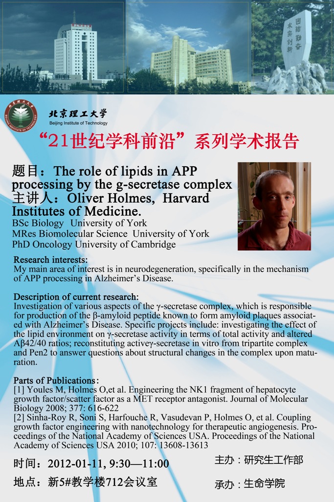 題目:《脂類在g-分泌酶復合體剪切APP進程中的作用》