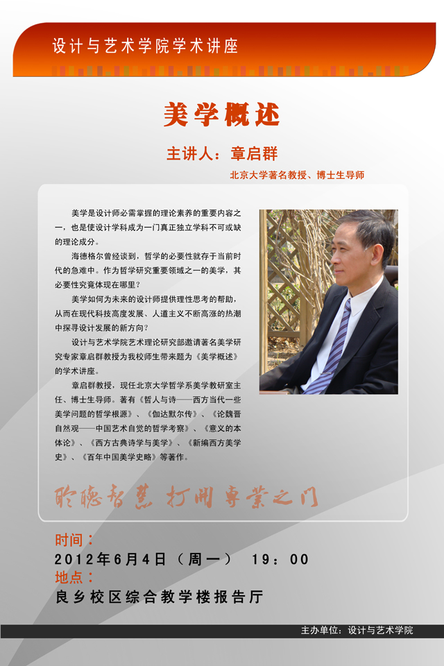 設計與藝術學院藝術理論研究部特邀請著名美學研究專家章啟群教授為全院師生帶來題為《美學概述》的學術講座。