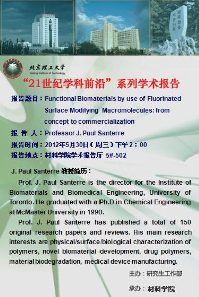 報(bào)告題目:Functional Biomaterials by use of Fluorinated