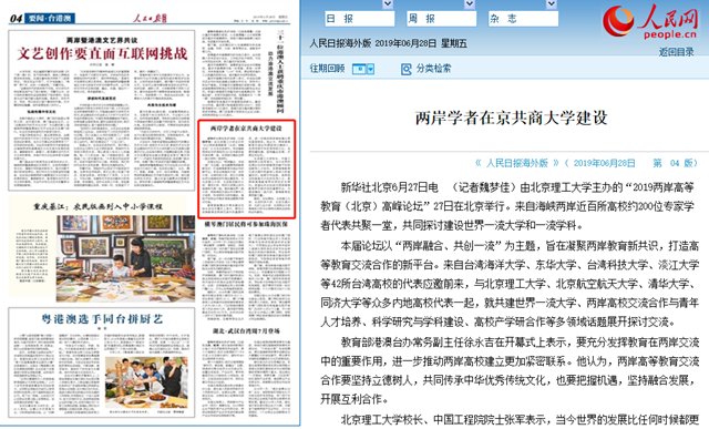 由北京理工大學(xué)主辦的“2019兩岸高等教育(北京)高峰論壇”27日在北京舉行。來自海峽兩岸近百所高校約200位專家學(xué)者代表共聚一堂,共同探討建設(shè)世界一流大學(xué)和一流學(xué)科。