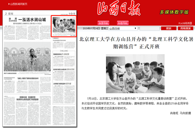 7月18日,北京理工大學在方山縣開辦的“北理工科學文化暑期訓練營”正式開班。本次培訓開設國學歷史文化、自然的奧秘、趣味數學等課程,來自全縣的270余名同學將與支教學生共同度過這段美好的時光。
