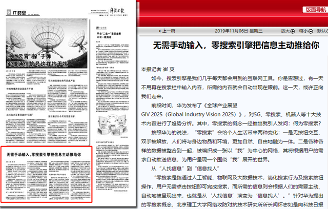 同時,閆懷志強調“零搜索并非是平地起高樓”,從輸入關鍵字完成搜索,到精準定向的智能推薦,搜索技術經歷了一個較長的發展過程。“當前,人工智能、大數據、物聯網等領域的發展,在搜索需求感知、搜索算法、搜索算力等方面,都為零搜索的實現提供了很好的技術支撐。”他說。