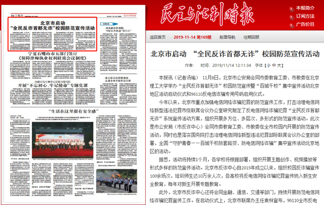 北京市啟動(dòng) “全民反詐首都無(wú)詐”校園防范宣傳活動(dòng)