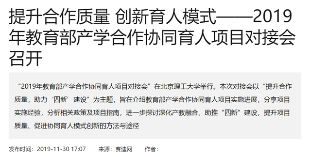 編輯:吳楠 審核:王征 閱讀次數:原文標題:提升合作質量 創新育人模式——2019年教育部產學合作協同育人項目對接會召開