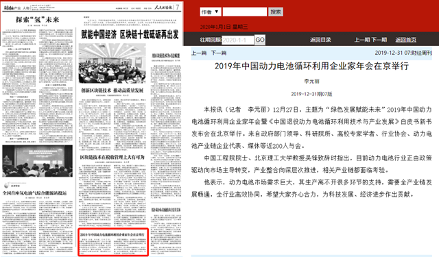 2019年中國(guó)動(dòng)力電池循環(huán)利用企業(yè)家年會(huì)在京舉行