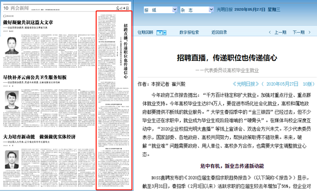 今年政府工作報告提出:“千方百計穩(wěn)定和擴大就業(yè)。加強對重點行業(yè)、重點群體就業(yè)支持。今年高校畢業(yè)生達874萬人,要促進市場化社會化就業(yè),高校和屬地政府都要提供不斷線的就業(yè)服務。”大學生春招季中的“金三銀四”已經(jīng)過去,但不少畢業(yè)生還在求職中,就業(yè)成為畢業(yè)生現(xiàn)階段難啃的“硬骨頭”。在媒體與校企深度互動中,“2020企業(yè)校招光明大直播”等線上宣講會、雙選會方興未艾。不少代表委員表示,國家部委、各地政府、高校共同努力,幫扶政策取得不錯效果。未來,破解“就業(yè)難”問題需要政府、用人單位、高校多方合作,也需要大學生調整就業(yè)心態(tài)。