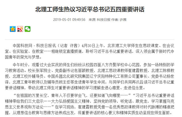 【中國科技網】北理工師生熱議習近平總書記五四重要講話