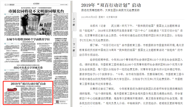 【北京青年報(bào)】2019年“雙百行動(dòng)計(jì)劃”啟動(dòng)