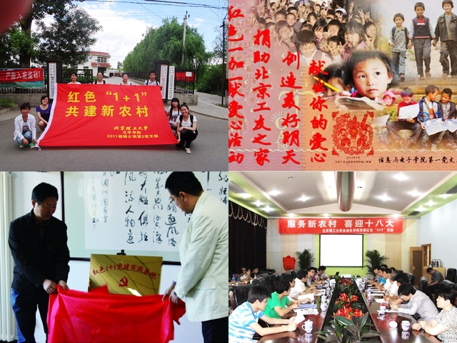 2012年4月18日,北理工紅色“1+1”活動正式啟動,共有54個學生黨支部參加活動。學生工作部推薦校內(nèi)評選前8名的支部,參加北京市紅色“1+1”活動優(yōu)秀黨支部的評選。2012年,全市共有765個學生黨支部與農(nóng)村、社區(qū)、部隊等黨支部開展紅色“1+1”共建活動,經(jīng)過專家討論、現(xiàn)場展示評審等環(huán)節(jié),我校設計與藝術學院2009級本科生黨支部脫穎而出,榮獲2012年度北京高校紅色“1+1”示范活動一等獎;化學學院2011級碩士班第二黨支部等5個黨支部獲得三等獎;信息學院2011級碩士通信一黨支部等2個黨支部獲得優(yōu)秀獎;北京理工大學榮獲2012年度北京高校紅色“1+1”示范活動優(yōu)秀組織獎。