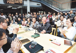 昨日,中共中央政治局常委、國務院總理溫家寶來到北京大學圖書館與學生座談,與同學們共度“五四”青年節新華社 圖