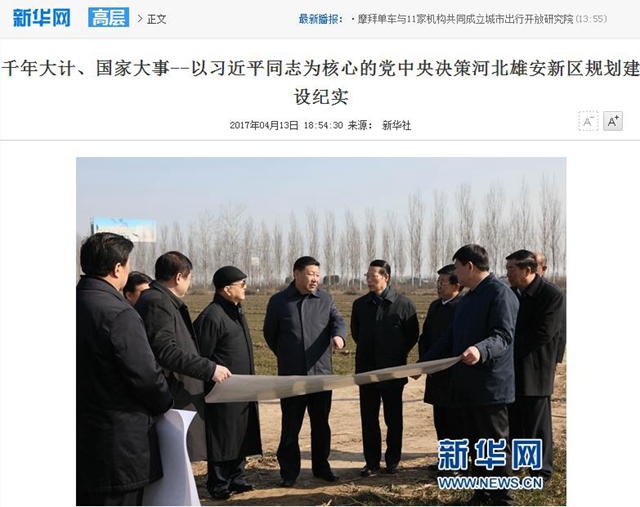 2017年4月1日,新華通訊社受權發布:中共中央、國務院決定設立河北雄安新區。消息一出,猶如平地春雷,響徹大江南北。