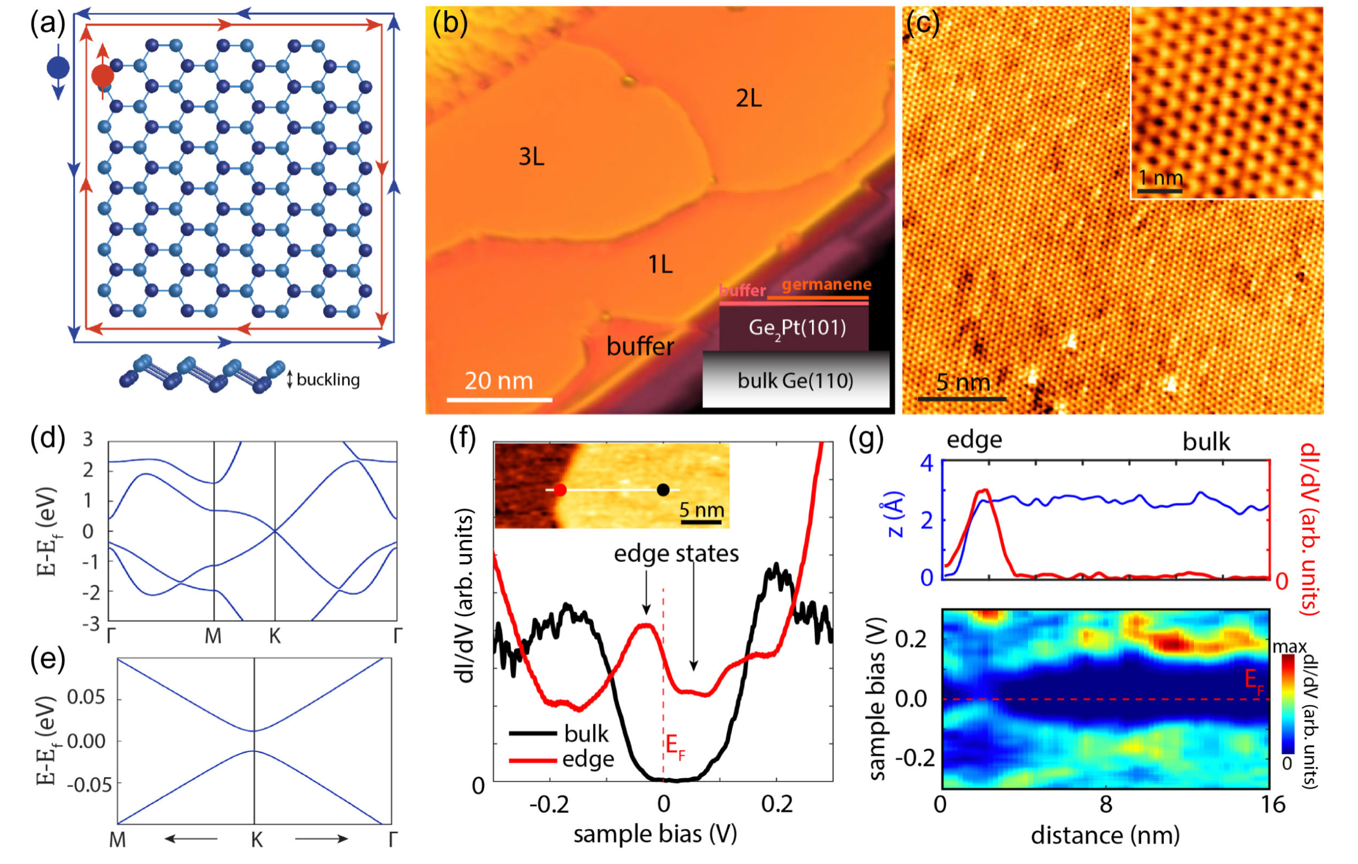 圖1. 鍺烯樣品形貌及其體能隙和拓撲邊緣態