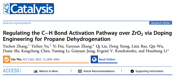 編輯:段凱龍 審核:王振華 閱讀次數:近日,北京理工大學化學與化工學院黎漢生教授團隊在丙烷脫氫催化劑結構調控與C-H鍵活化機制方面取得重要進展。相關研究成果以“Regulating the C–H Bond Activation Pathway over ZrO2 via Doping Engineering for Propane Dehydrogenation”為題,在催化領域頂級期刊《ACS Catalysis》上發表(DOI:10.1021/acscatal.3c01002)。該工作以北京理工大學為第一通訊單位,黎漢生教授和張耀遠預聘助理教授為共同通訊作者,碩士研究生張雨宸和于宜辰為該論文的共同第一作者。