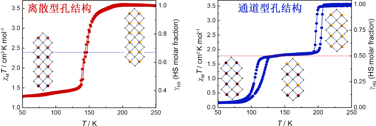 主客體相互作用在實現材料的可切換結構與功能方面發揮著重要作用,但合理的設計與控制仍具有挑戰。柔性金屬有機框架材料(Flexible metal-organic frameworks, FMOFs)因其結構的可調節性和主客體相互作用的密切關聯引起了研究者廣泛的關注。在結構轉變的過程中,金屬中心的配位構型變化有可能導致材料磁學性質的變化。這種磁性多孔材料擴寬了多孔材料的應用前景,并且為主客體相互作用機理的理解提供了新的途徑。
