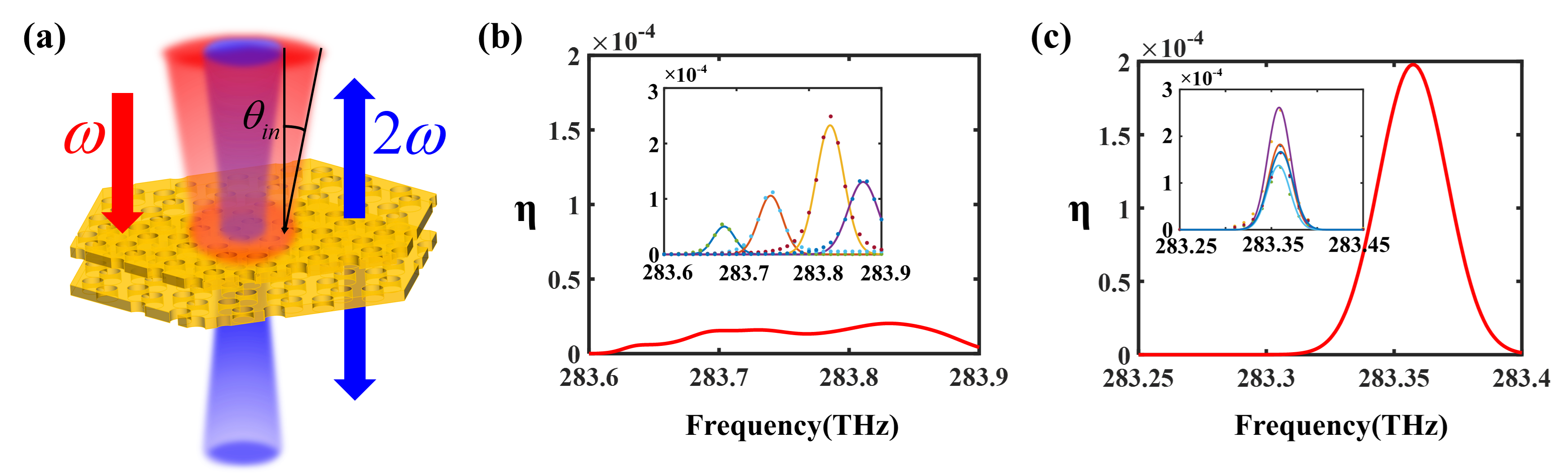 圖3. 廣角光源下moiré準BICs增強SHG方案。