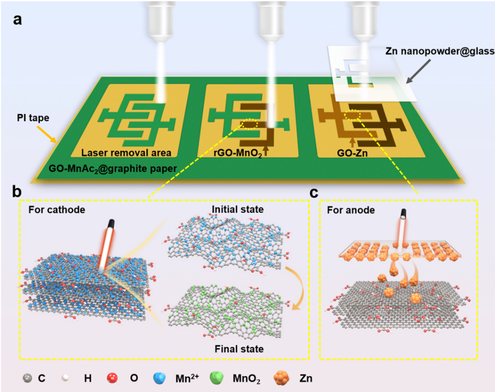 圖1. 平面GO-Zn//rGO-MnO2 MBs的制備及原理圖