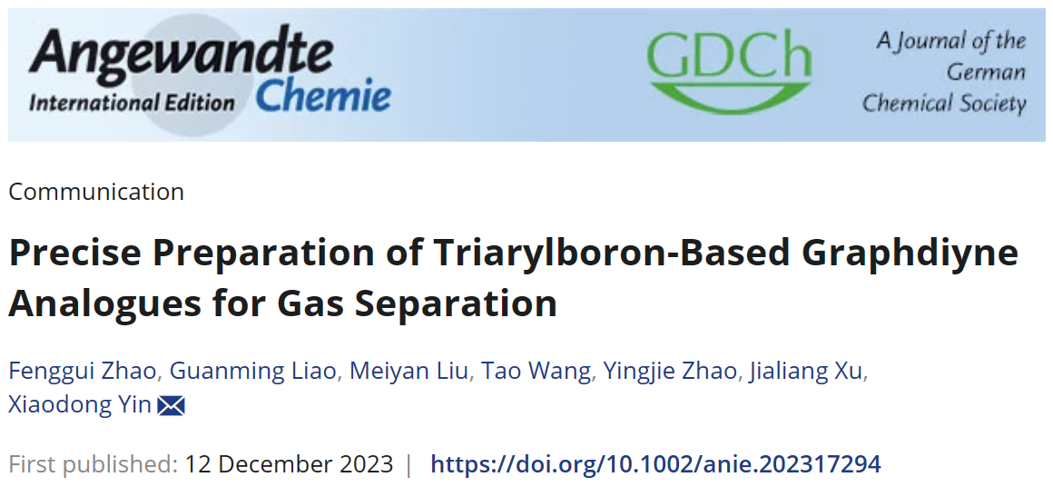 編輯:田柳 審核:王振華 閱讀次數:近日,北京理工大學化學與化工學院博士生趙豐貴第一作者身份在國際頂級期刊《Angewandte Chemie International Edition》發表題目為“Precise Preparation of Triarylboron-Based Graphdiyne Analogues for Gas Separation”的研究論文(DOI: 10.1002/anie.202317294)。北京理工大學為論文第一通訊單位,北京理工大學化學與化工學院尹曉東特別研究員為通訊作者。