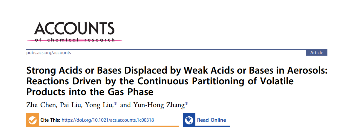 編輯:隆哲源 審核:王振華 閱讀次數:近日,Accounts of Chemical Research(《化學研究評述》)以“Strong Acids or Bases Displaced by Weak Acids or Bases in Aerosols: Reactions Driven by the Continuous Partitioning of Volatile Products into the Gas Phase”為題,在線發表了北京理工大學化學與化工學院張韞宏團隊的綜述文章,討論了氣溶膠體系中弱酸(弱堿)置換強酸(強堿)的獨特現象。