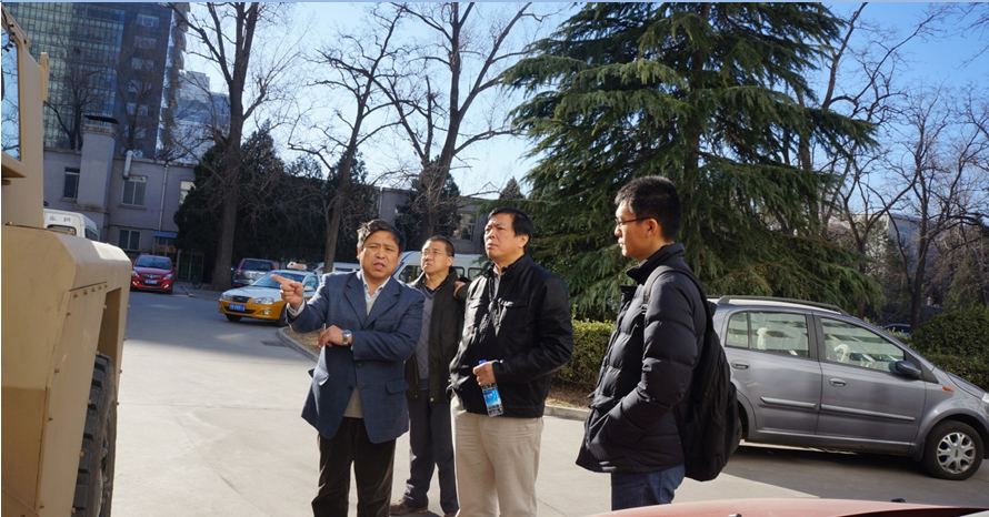 訪問結(jié)束后,張維斌研究員與陳慧巖教授、高利教授及實(shí)驗(yàn)室教師在北京理工大學(xué)研制的智能車輛前合影留念。