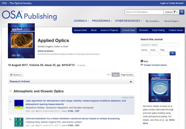 美國《Applied Optics》雜志封面刊登北理工光學微透鏡陣列制造最新成果