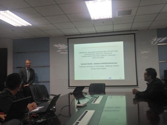 編輯:曹安琪 審核:司黎明 閱讀次數:2017年11月8日,瑞典查爾姆斯理工大學教授Herbert Zirath應邀來訪北京理工大學信息與電子學院,并作了題為《Design of Millimeter wave Multifunction Integrated Circuits for Data Communication and Remote Sensing Applications》的學術報告。Herbert Zirath教授是微波和微電子領域的國際知名專家、查爾姆斯理工大學微波電子實驗室主任、IEEE Fellow,同時也是北京理工大學-瑞典查爾姆斯理工大學“高頻段無線寬帶信號與系統”國際聯合實驗室瑞典方學術責任教授。