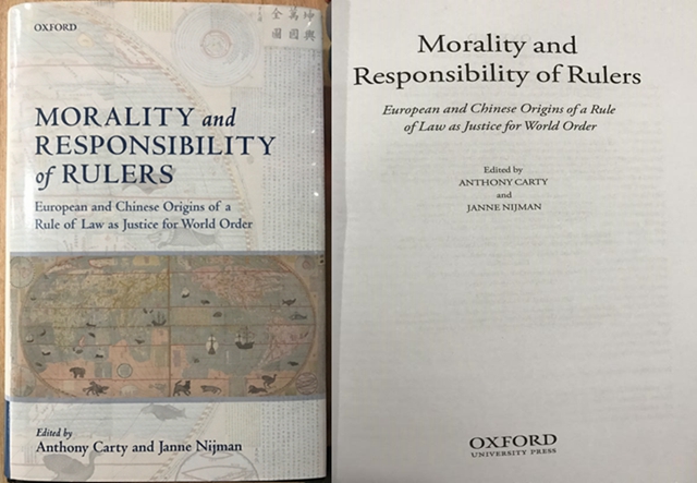 編輯:于璐 審核:李壽平 閱讀次數:北理工法學院外籍教授Anthony Carty新作《 Morality and Responsibility of Rulers--European and Chinese Origins of a Rule of Law as Justice for World Order》(中文版譯為《執(zhí)政者的道德與責任——中歐關于世界秩序正義的法治起源》),由英國牛津大學出版社于2018年正式出版。本書分為兩大部分,共計19篇文章,分別從不同角度討論了世界秩序中的中歐法治思想。