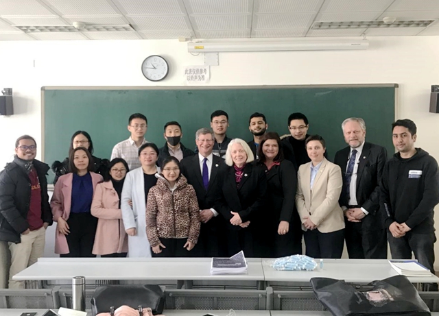 編輯:于璐 審核:張愛秀 閱讀次數:3月20日,科羅拉多州最高法院(Colorado Supreme Court)和司法實務機構一行五人抵達北理工,開始了為期4天的訪問。此次來訪的有科羅拉多州最高法院法官Scott Meiklejonh,科羅拉多州律師協助計劃(COLAP)執行理事Barbara Ezyk,科羅拉多州律師輔助計劃(CAMP)主任J. Ryann Peyton,司法監管辦公室副主任Margaret B. Funk,和有著二十多年從業經驗的律師Scott Meiklejohn。